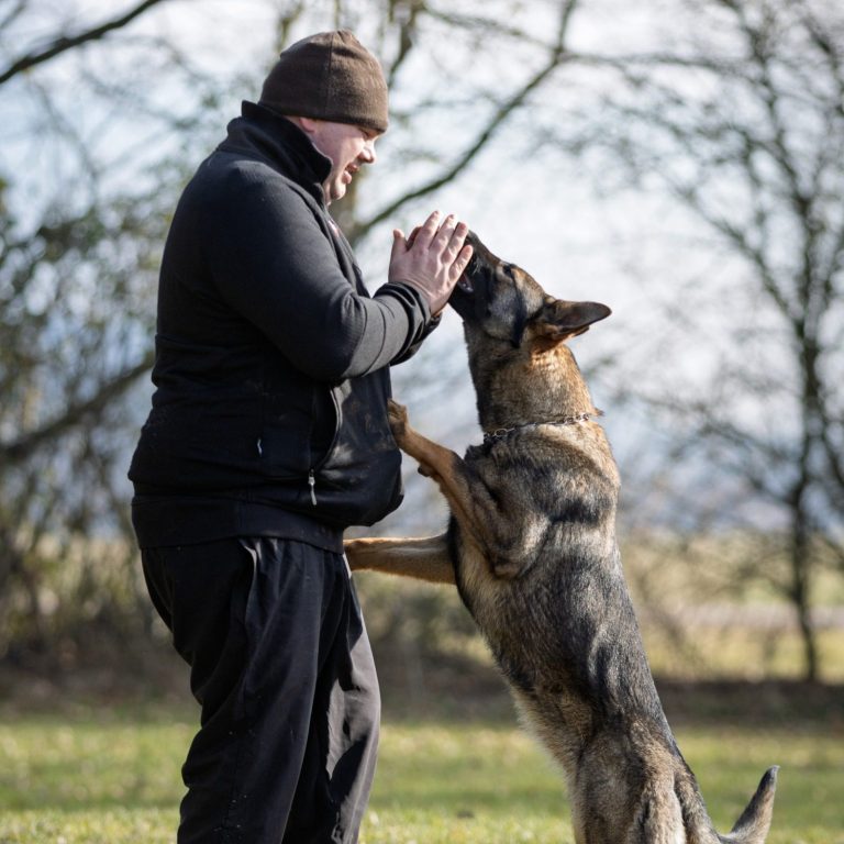 Wie du dir sicher denken kannst, wird auch der Schutzdienst Schritt für Schritt den Entwicklungen des Hundes entsprechend zusammen mit einem Helfer aufgebaut.
